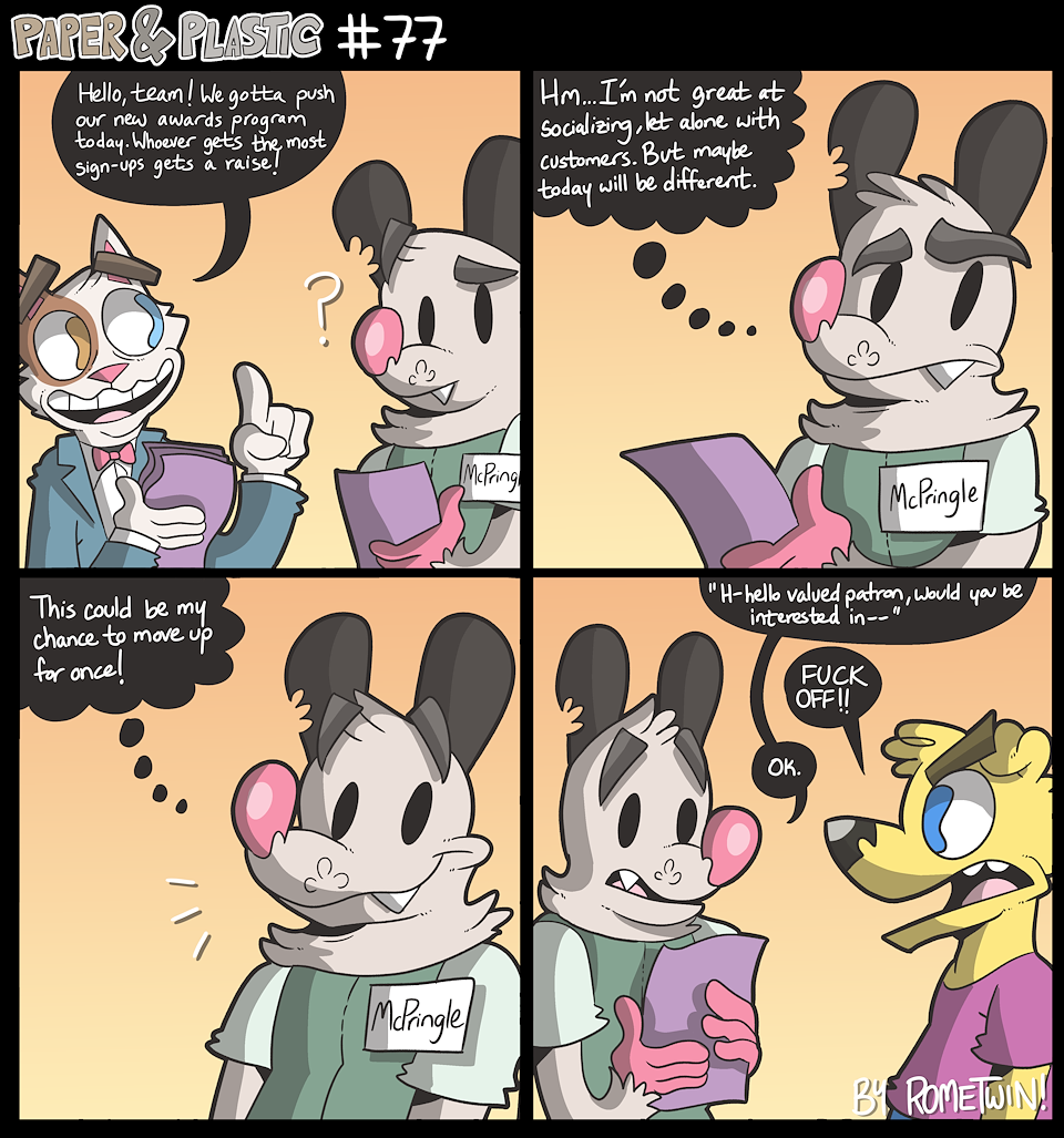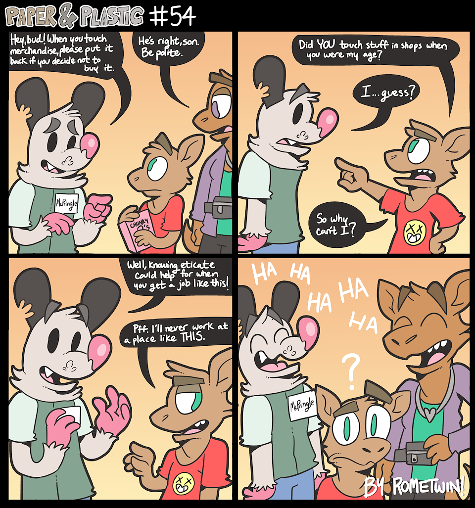 Customers screaming in your ear? Management riding your ass? Crying babies, destructive teenagers, indecisive old people, and entitled middle class chumps driving you insane? You must work in retail! Join Jasper, David and Ryan as they navigate Bargain-Wurld’s treacherous working environment, as well as juggle relationships, school, family and life.