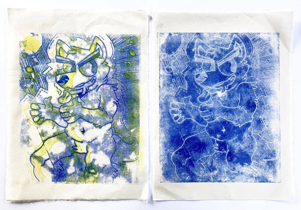 I'M HUNGRY! I'M ALIVE!! - Monoprint, 2020